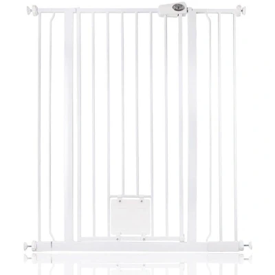 Bettacare Pet Gate with Lockable Cat Flap, 94.3cm 101.9cm, White, 104cm in Height, Extra Tall Dog Safety Barrier Easy Installation