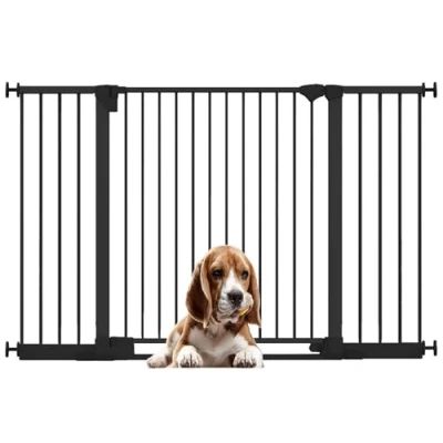 OVER 30 YEARS OF TRUST – Bettacare, has been dedicated to creating safe and secure spaces for children and pets for over three decades. Our commitment to safety and quality ensures that our products are rigorously tested to meet the highest current standards. With a legacy of trust and reliability, Bettacare is a name you can depend on for your family's safety needs. RELIABLE SAFETY - Crafted from durable materials, our products ensure long-lasting protection. Smooth, rounded edges prevent injuries, while finishes are lick-safe and bite-proof for ultimate safety. Our sturdy pet barriers feature robust and strong construction. Designed to prevent your pets from accessing unsafe areas and be simple and reliable for your family to use, all our pet barriers pass our stringent quality control and user testing, providing unparalleled security. Bettacare SafeStep Dog Gate, 152cm - 159cm COLOUR - BLACK - Features a high-quality paint finish that is rigorously tested and certified to be free from harmful chemicals. This ensures a child-safe coating, providing peace of mind while maintaining a durable and attractive appearance. HEIGHT OF GATE - When installed - 73cm PRESSURE FIT TECHNOLOGY - Securely mounts the safety gate without the need for drilling, using a pressure-fit system that creates a strong and stable barrier by applying tension between the gate and the walls or door frames. Ideal for easy installation and removal. ALL OPTIONS GATE STOPPER - Customize your gate to open in one direction or both, providing safety and flexibility to suit your specific needs. OPEN GATE WARNING INDICATOR - Our visual indicator reassures you that the gate is correctly closed and secure, offering you peace of mind. SAFESTEP - Extra low bar to help prevent tripping when walking through. EASY CLOSE - Assisted closing system draws the gate back towards the locking cradle. WIDE WALK-THROUGH - The spacious opening allows for easy passage, making it convenient for adults and older children. OUT OF THE BOX SOLUTION - No additional extensions required to reach your desired width with our out of the box wider gate solution. ERGONOMIC HANDLE - Designed for comfortable and easy use, the handle ensures easy one-hand opening and closing. EASE OF INSTALLATION & STYLISH DESIGN - Our gates offer quick, simple installation with detailed instructions for a secure fit. The intuitive one-hand opening mechanism for adults and easy-to-close, secure locking system enhance user-friendliness. Stylish and high-quality designs complement your home interior, making our products highly rated for reliability and ease of use. A comprehensive warranty is included, reflecting our commitment to customer satisfaction and product excellence.