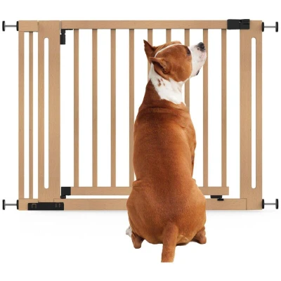 Bettacare Wooden Elegance Dog Gate, Natural, 105cm 113cm, Pressure Fit Safety 73cm Extra Wide Doorway, Gate for Puppy, and Pet, Stylish Design Easy Installation