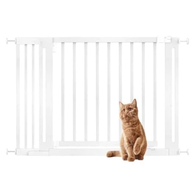 OVER 30 YEARS OF TRUST – Bettacare, has been dedicated to creating safe and secure spaces for children and pets for over three decades. Our commitment to safety and quality ensures that our products are rigorously tested to meet the highest current standards. With a legacy of trust and reliability, Bettacare is a name you can depend on for your family's safety needs. RELIABLE SAFETY - Crafted from durable materials, our products ensure long-lasting protection. Smooth, rounded edges prevent injuries, while finishes are lick-safe and bite-proof for ultimate safety. Our sturdy pet barriers feature robust and strong construction. Designed to prevent your pets from accessing unsafe areas and be simple and reliable for your family to use, all our pet barriers pass our stringent quality control and user testing, providing unparalleled security. Bettacare Wooden Elegance Dog Gate, 125cm - 133cm COLOUR - WHITE - Features a quality natural wood finish that is free from harmful chemicals. Providing peace of mind while maintaining a durable and attractive appearance. HEIGHT OF GATE - When installed - 77cm PRESSURE FIT TECHNOLOGY - Securely mounts the safety gate without the need for drilling, using a pressure-fit system that creates a strong and stable barrier by applying tension between the gate and the walls or door frames. Ideal for easy installation and removal. NO GATE RESTRICTOR - Gate opens freely in both directions. SIMPLE CLOSE - Manual closing system for quick and easy locking. EXTRA WIDE WALK-THROUGH - Slim frame and maximum door size for easy passage. EASILY EXTENDABLE - The gate can be effortlessly extended with simple one-piece gate extensions, accommodating various doorway widths. STAY OPEN ABILITY - The safety gate remains open until you decide to close it. ERGONOMIC HANDLE - Designed for comfortable and easy use, the handle ensures easy one-hand opening and closing. EASE OF INSTALLATION & STYLISH DESIGN - Our gates offer quick, simple installation with detailed instructions for a secure fit. The intuitive one-hand opening mechanism for adults and easy-to-close, secure locking system enhance user-friendliness. Stylish and high-quality designs complement your home interior, making our products highly rated for reliability and ease of use. A comprehensive warranty is included, reflecting our commitment to customer satisfaction and product excellence.