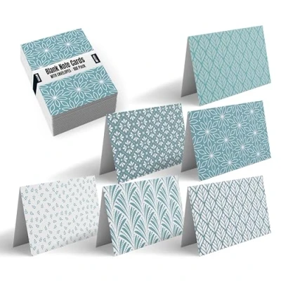 Better Office Products 100 Pack All Occasion Greeting Cards, Assorted Blank Note 4 x 6 inch, Blue Hue Floral Designs, Inside, with Envelopes,