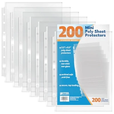 Better Office Products 200 Count Mini Poly Sheet Protectors, Standard Weight, Diamond Clear, by, 5.5 x 8.5, Pack