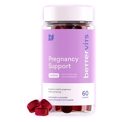 90 Advantage card points. Bettervits Pregnancy Support Gummies With Folic Acid And Vitamin B12 - 60 Gummies FREE Delivery on orders over 45 GBP.
