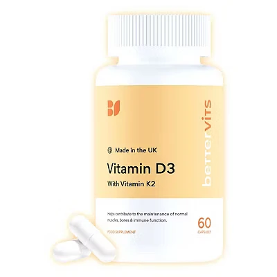 Bettervits Vitamin D3 & K2 High Strength 4,000IU With Supports Immunity Bones Energy Vegan Friendly