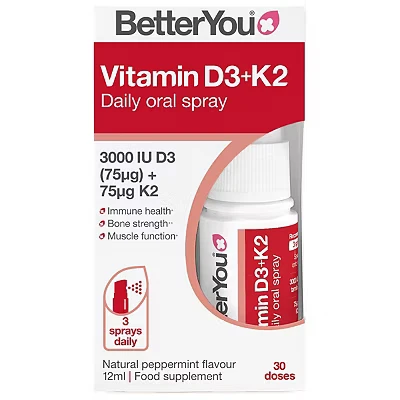 33 Advantage card points. BetterYou Vitamin D3 3000 IU + K2 12ml Oral Spray 12ml FREE Delivery on orders over 45 GBP.