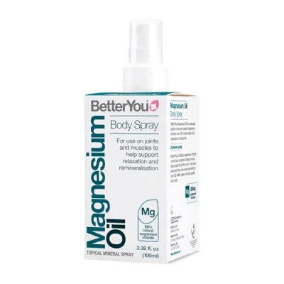 BetterYou Magnesium Oil Body Spray, Pure and Natural Source of Chloride, Spray Supplement, Supports Muscle Recovery, Vegan & Palm Free, 100ml (600 Sprays)
