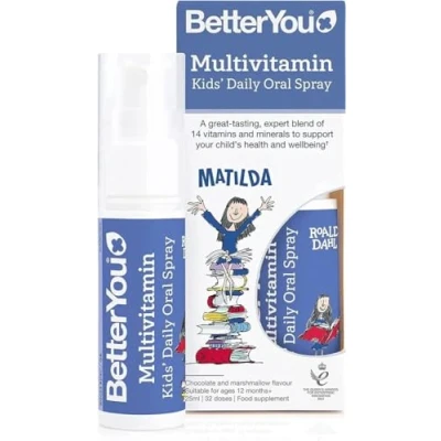 BetterYou MultiVit Junior Daily Oral Spray, Pill free Multivitamin Supplement, 14 Essential Nutrients to Support your Child's Health, 1 month Supply, In partnership with The Roald Dahl Story Company