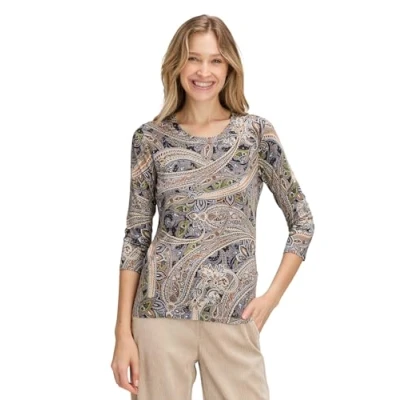 Women's T-shirt from Betty Barclay Tailored fit Paisley pattern provides a modern, stylish look The shirt has 3/4 sleeves and a classic crew neck