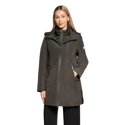 Functionality meets design - the Betty Barclay women's jacket is a versatile companion for changeable weather. Innovative 4-in-1 design: a water-repellent shell jacket on the outside, a warm quilted jacket inside that can be converted into a vest. Removable hood with width adjustment for flexibility in all weather conditions. Two-way zip and zip pockets ensure comfort and practicality. Casual fit with stand-up collar gives the jacket a sporty and modern touch.