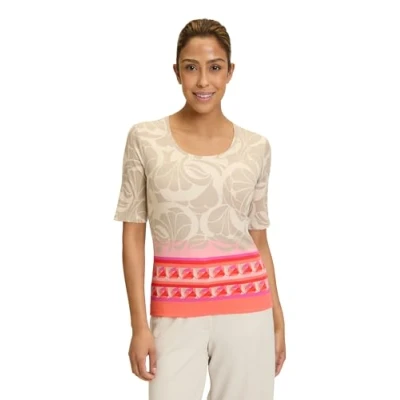 Betty Barclay Women's Shirt Kurz 1/2 Arm T, Taupe/Red, 16