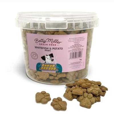 Betty Miller Grain Free Dog Treats Biscuits (1kg, White Fish & Potato Paws)