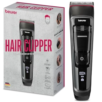 PROFESSIONAL STYLING: The MN5X hair clipper comes with 6 high-quality accessories - the adjustable cutting lengths of 3, 6, 10, 16, 19 to 25 mm as well as a fine 4-step adjustment of 0.6 to 2.4 mm allow for a precise and individual styling result according to your desires LONG LASTING PERFORMANCE: The powerful lithium battery offers an impressive 4.5 hours of battery life - LED display shows the percentage of battery charge, informs about the charging status and has a travel safety indicator Easy cleaning: the removable cutting accessory is washable under running water, which ensures hygienic use and makes cleaning easier MAXIMUM FLEXIBILITY: Depending on needs, the trimmer can be used at home or on the go, wirelessly or with a switch - the integrated travel safety prevents accidental switching on of the device Delivery: The MN5X, 6 accessories, a practical storage case, a USB-C cable, a cleaning brush and oil are included in the delivery