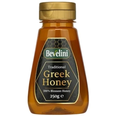 Bevelini Greek Honey 250g, Smooth Natural Taste, Squeezy Bottle, Blossom for Tea, Toast, Baking, Marinades and Desserts, Pure Spread, Pantry Essential