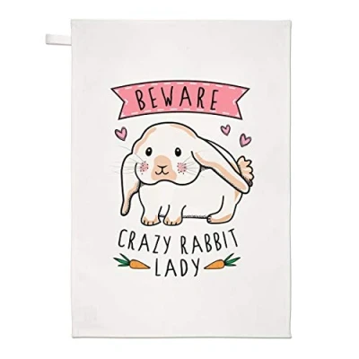 Beware Crazy Rabbit Lady Tea Towel Dish Cloth