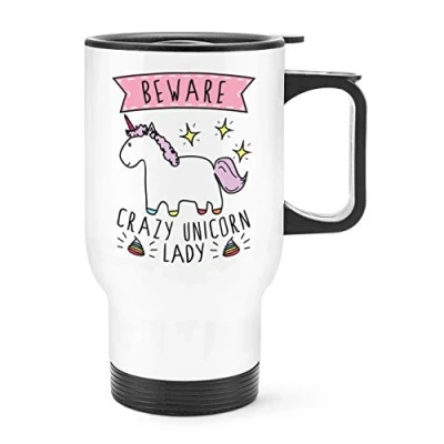 Beware Crazy Unicorn Lady Travel Mug Cup with Handle