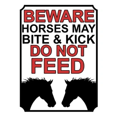 BEWARE HORSES MAY BITE & KICK DO NOT FEED METAL SIGN 200MM X 150MM (1952H1)