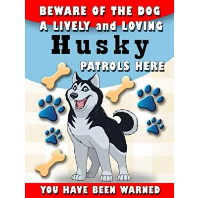 Beware Of The Dog Husky Patrols Here Decorative Metal Sign/Plaque Pet Theme 200MM X 150MM (1928H1)