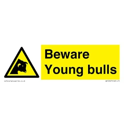 Beware Young bulls Sign 150x50mm L15