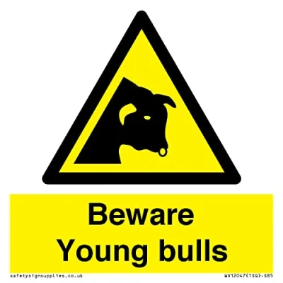 W034 : Bull This sign is made from plastic semi-rigid 1mm 1mm thin plastic sign, can be screwed, stuck with adhesive, or attached with cable ties. Not suitable for hanging. S85 square Sign Text: Beware Young bulls