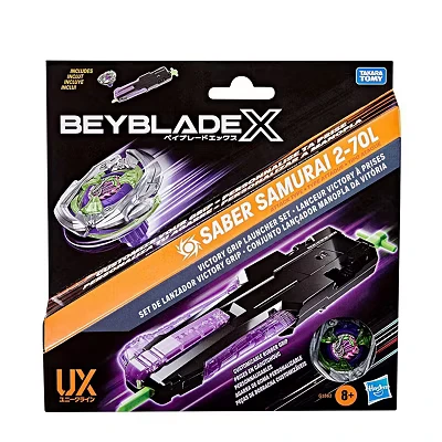 READY TO BATTLE, RIGHT OUT OF THE BOX: A brilliant gift for kids who love fast, competitive play. Includes a right-spin launcher and Saber Samurai 2-70L right-spinning top so they can launch, clash and collect immediately (Beystadium required, sold separately). EXTRA CONTROL WITH THE VICTORY GRIP: The adjustable rubber grips help small hands find a comfy hold, improving stability and launch confidence. Kids can practise technique, build consistency and feel the difference in every “Let it rip!”. POWERFUL 25 CM RIPCORD: The long ripcord helps generate strong spin for bigger bursts of speed and longer battles - great for friendly tournaments with siblings and friends, or mastering solo launch drills before match day. DESIGNED FOR THE BEYBLADE X SYSTEM: Works with Beyblade X tops and stadiums; perfect for stepping into the newest generation of Beyblade battles. Right-spin launcher only; pair with Beyblade X right-spinning tops for best performance. SKILL-BUILDING, SCREEN-FREE FUN: Competitive top battles boost dexterity, timing and focus while encouraging friendly rivalry, fair play and quick decision-making - ideal for rainy-day play, parties and after-school showdowns. GREAT GIFT FOR BOYS & GIRLS (8+): A smart pick for birthdays or Christmas - easy to wrap, exciting to open, and endlessly replayable as kids improve their launch and swap parts across their growing Beyblade X collection. DURABLE & PORTABLE: Lightweight, take-anywhere design means kids can bring the launcher to a friend’s house or local club. Simple to set up, robust enough for regular play—ready for practice or tournament-style battles. WHAT’S IN THE BOX: 1 Victory Grip right-spin launcher (with 25 cm ripcord and customisable rubber grips) and 1 Saber Samurai 2-70L right-spinning top. Beystadium required (sold separately). Ages 8+., Manufacturer: Hasbro