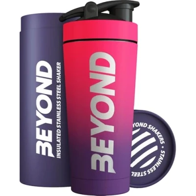 Beyond Shakers Insulated Metal Protein Shaker, Stainless Steel Supplement Bottle BPA Free for Gym 735ml in Pink & Purple