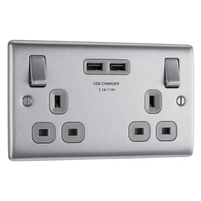 BG 2G USB Switched Socket Brushed Steel