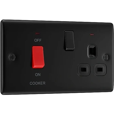 SLEEK AND SLIM MATT BLACK COOKER CONTROL UNIT WITH LED POWER INDICATORS: From BG Electrical, this 45A cooker unit switch and 13A socket has a sleek round edge, red rocker switch and colour matching screws. Ideal for domestic or commercial use PART OF THE NEXUS METAL RANGE: From BG Electrical, has softly rounded corners, and a slim profile – combining quality with modern elegance. Featuring integrated moisture gasket preventing the edges from tarnishing. CONVENIENT COOKER CONTROL DOUBLE POLE SWITCHING: Safely operates a hardwired cooker, oven or hob independently from other appliances for easy isolation. Features double pole for high integrity circuits and twin-earth as standard for additional safety COLOUR CODED CAPTIVE SCREW TERMINALS: Makes it incredibly easy to install and to connect the wires. Fits a 47mm back box, ideal for retrofit. BG ELECTRICAL 25 YEARS MANUFACTURER'S WARRANTY: They guarantee against faulty materials and workmanship for 25 years – giving you total peace of mind, Weight: 0.4850169764 Pounds, Manufacturer: BG Electrical