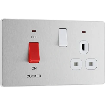 SLIM AND CONTEMPORARY BRUSHED STEEL COOKER CONTROL UNIT WITH LED POWER INDICATORS: From BG Electrical, this 45A cooker unit switch and 13A socket has a low profile, red rocker switch and removable clip on/off front. Ideal for redecorating PART OF THE EVOLVE ELECTRICAL RANGE: From BG Electrical, Evolve wiring accessories are available in a variety of colours and finishes to give you greater choice and flexibility when choosing electrical accessories to compliment your decor CONVENIENT COOKER CONTROL DOUBLE POLE SWITCHING: Safely operates a hardwired cooker, oven or hob independently from other appliances for easy isolation. Features double pole for high integrity circuits and twin-earth as standard for additional safety COLOUR CODED CAPTIVE SCREW TERMINALS: Makes it incredibly easy to install and to connect the wires. Fits a 47mm back box, ideal for retrofit. BG ELECTRICAL 25 YEARS MANUFACTURER'S WARRANTY: They guarantee against faulty materials and workmanship for 25 years – giving you total peace of mind, Weight: 0.440924524 pounds, Manufacturer: PCDBS70W-01
