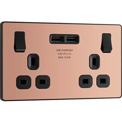 SLIM AND CONTEMPORARY DOUBLE SWITCHED POWER SOCKET WITH TWO USB CHARGING PORTS: From BG Electrical, the Evolve polished copper double socket is ideal for modern interiors PART OF THE NEXUS RANGE FROM BG ELECTRICAL: It has been designed with angled in line colour coded terminals and backed out captive screws for ease of installation THE SLEEK AND SLIM EVOLVE DOUBLE SOCKET HAS A LOW PROFILE SCREWLESS FLAT PLATE: That clips on and off, ideal for re-decorating FOR FAST AND EASY INSTALLATION: The double socket fits a 25mm back box making it an ideal retro-fit replacement for existing sockets BG ELECTRICAL IS PART OF LUCECO PLC: They guarantee against faulty materials and workmanship for 25 years – giving you total peace of mind, Manufacturer: PCDCP22U3B-01