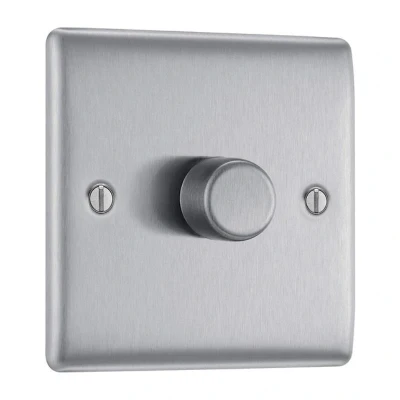 BG Electrical Intelligent Single Wall Dimmer Switch, 2 Way, Raised Profile, Round Edges, Nexus Metal, Brushed Steel, 200W, NBS81