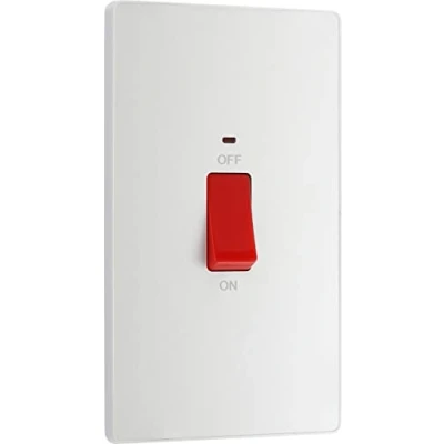SLIM AND CONTEMPORARY LARGE COOKER SWITCH WITH LED INDICATOR: From BG Electrical, the Evolve pearlescent white large 45A cooker switch is ideal for modern interiors. With its screwless removeable clip on/off front, it's ideal for redecoration PART OF THE EVOLVE ELECTRICAL RANGE: From BG Electrical, Evolve wiring accessories are available in a variety of colours and finishes to give you greater choice and flexibility when choosing electrical accessories to compliment your decor COLOUR CODED CAPTIVE SCREW TERMINALS: Makes it incredibly easy to install and to connect the wires. Fits a 47mm back box, ideal for retrofit DOUBLE POLE SWITCHING: Safely operates a hardwired cooker, oven or hob independently from other appliances for easy isolation. Features double pole switching for high integrity circuits and twin-earth for additional safety BG ELECTRICAL 25 YEARS MANUFACTURER'S WARRANTY: They guarantee against faulty materials and workmanship for 25 years – giving you total peace of mind, Weight: 0.3968320716 pounds, Manufacturer: PCDCL72W-01