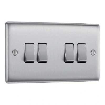 BG Electrical Quadruple Wall Light Switch, 2 Way, Raised and Slim Profile, Round Edges, Nexus Metal, Brushed Steel, 20A, 16AX, NBS44