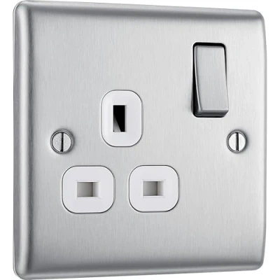 SLEEK AND SLIM BRUSHED STEEL SINGLE SWITCHED POWER SOCKET: With double pole switching, so it switches both the live and neutral to for safe isolation of the plugged-in appliance PART OF THE NEXUS METAL RANGE: From BG Electrical, has softly rounded corners, and a slim profile – combining quality with modern elegance QUICK AND SIMPLE INSTALLATION: Angled in-line colour coded terminals allow fast and secure installation, whilst captive backed-out terminal screws prevent screw loss. Minimum mounting box depth 25mm, ideal for retro-fit FIXED INTEGRATED MOISTURE GASKET : Prevents metal edges from tarnishing when installing on new plaster BG ELECTRICAL 25 YEARS MANUFACTURER'S WARRANTY: They guarantee against faulty materials and workmanship for 25 years – giving you total peace of mind, Weight: 0.2866009406 Pounds, Manufacturer: BG Electrical