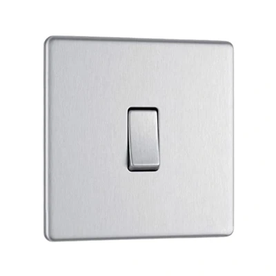 BG Electrical Single Wall Light Switch, 2 Way, Screwless Front Plate, Slim Profile, Premium Flatplate, Brushed Steel, 20A, 16AX, FBS12