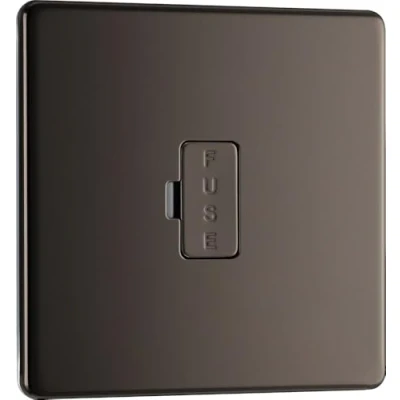 SLIMLINE BLACK NICKEL 13A UNSWITCHED FUSED CONNECTION UNIT: From BG Electrical, has softly rounded corners with a screwless flat plate and low profile– giving a clean look that exudes modern elegance. Embossed with FUSE on the fuse cover PART OF THE SCREWLESS FLATPLATE RANGE: With a secure easy “clip on, clip off” front plate for a seamless appearance, and ideal when redecorating. A moisture gasket protects the metal edges from tarnishing. Ideal when using new plaster ENABLES POWER ISOLATION FROM THE MAINS ELECTRICITY SUPPLY: Ideal for spur circuits and hardwired appliances. Easy fuse access and control of hardwired or undercounter appliances ANGLED COLOUR CODED CAPTIVE SCREW TERMINALS: Makes it incredibly easy to install and to connect the wires. Adheres to BS 1363 Part 4 regulations for a safer electrical installation. Fits a 35mm back box, ideal for retrofit BG ELECTRICAL 25 YEARS MANUFACTURER'S WARRANTY: They guarantee against faulty materials and workmanship for 25 years – giving you total peace of mind