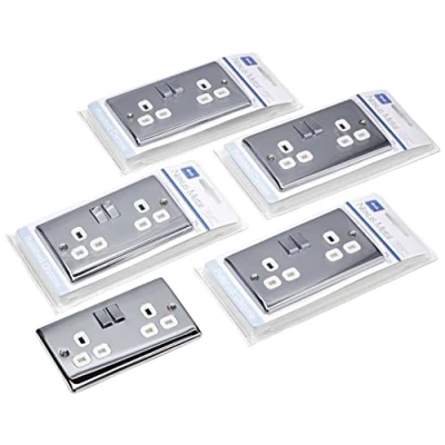 Pack of 8 x BG Nexus NPC22W Polished/Mirror Chrome Twin Switch Sockets 13amp