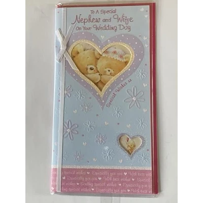 BGC To A Special Nephew And & Wife On Your Wedding Day Card Blue/Pink Teddies/Hearts Ribbon/Glitter Detail(PRELUDE33294)