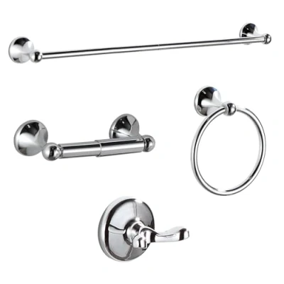 BGL Bathroom Accessory Set, Chrome Adjustable Expandable Towel Bar 4 Piece Hardware Set Wall Mounted Robe Hook Toilet Paper Holder Ring