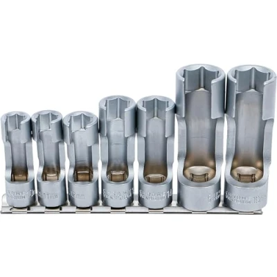 made of chrome vanadium steel for the assembly of top and side wired temperature sensors, thermo switches and other components also suitable for nuts and bolts on bent pipes the slot width is: 7.4 mm - 8.8 mm - 9.1 mm - 9.7 mm - 10.5 mm - 13.3 mm - 14.4 mm incl. socket rail scope of delivery: Slotted special socket set, drive internal square 10 mm (3/8"): 10 - 11 - 12 - 13- 14 - 17 - 19 mm surface finish: satin chrome plated, Weight: 1.1243575362 pounds, Manufacturer: BGS technic PRO+