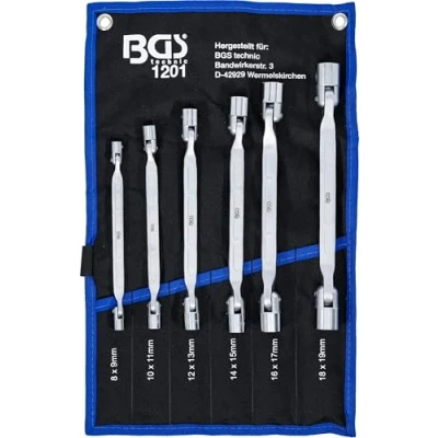 made of chrome vanadium steel packed in a tetron wallet double ring spanner: 8 x 9 - 10 x 11 - 12 x 13 - 14 x 15 - 16 x 17 - 18 x 19 profile: 12-point, Weight: 2.9321480846 Pounds, Manufacturer: BGS technic KG
