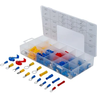 scope of delivery: 12 crimping sleeves, red, 0.25 - 1.5 mm² | 18 crimping sleeves, blue, 1.5 - 2.5 mm² | 12 crimping sleeves, yellow, 4 - 6 mm² 10 flat plugs partly insulated, blue, 1.5 - 2.5 mm² | 5 flat plugs partly insulated, yellow, 4 - 6 mm² | 10 flat plugs sleeve partly insulated, blue, 1.5 - 2.5 mm² | 5 flat plugs sleeve partly insulated, yellow, 4 - 6 mm² 4 crimp connectors, red, 0.50 - 1.5 mm² | 4 crimp connectors, blue, 1.5 - 2.5 mm² | 10 round plugs partly insulated, blue, 1.5 - 2.5 mm² | 10 round plugs sleeve fully insulated, blue, 1.5 - 2.5 mm² 4 ring cable lugs partly insulated, yellow, 4 - 6 mm², Ø 5 mm | 4 ring cable lugs partly insulated, yellow, 4 - 6 mm², Ø 8 mm | 4 ring cable lugs partly insulated, yellow, 4 - 6 mm², Ø 10 mm 10 ring cable lugs partly insulated, blue, 1.5 - 2.5 mm², Ø 4 mm | 10 ring cable lugs partly insulated, blue, 1.5 - 2.5 mm², Ø 5 mm | 10 ring cable lugs partly insulated, blue, 1.5 - 2.5 mm², Ø 6 mm | 10 fork cable lugs partly insulated, blue, 1.5 - 2.5 mm², Ø 4 mm | 8 ring cable lugs partly insulated, red, 0.5 - 1.5 mm², Ø 4 mm, Weight: 0.51367707046 pounds, Manufacturer: BGS