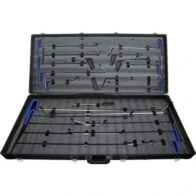 suitable for removing dents includes irons with round, flat, point and ball heads made of 5 to 14 mm round stainless steel 45° up to 135° bent heads length: 250 mm to 1150 mm PVC dipped handles in aluminium transport case with strip holders for denting irons, Weight: 39.8595769696 pounds, Manufacturer: BGS