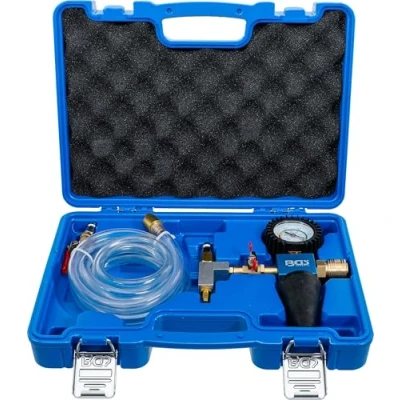 for the straight forward bubble-free filling of coolant systems, at the same time testing for leaks by negative pressure universal version with quick-action coupling gauge with rubber protection (accuracy +/- 2 %) rubber head adjusts to nearly all car types cone adaptor diameter: 15 to 44 mm