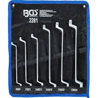 made of chrome vanadium steel hot forged deep offset ring end profile: E-type double ring spanner E6xE8 - E7xE11 - E10xE12 - E14xE18 - E16xE22 - E20xE24 surface finish: satin chrome plated, Weight: 1.7196056436 Pounds, Manufacturer: BGS