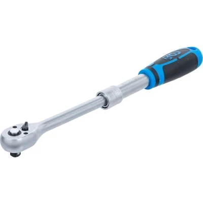 for tightening and loosening tight screw connections | long and telescopic lever arm for high torques | lockable in 4 various stages (240 - 345 mm) in connection with a self-locking ring with practical quick-release insert for easy change of sockets | non-slip and ergonomically shaped 2-component handle for safe and comfortable work | fine toothed with 72 teeth ratchet head with lever switch for changing the screwing direction (right-left rotation) | ball lock guarantees a firm and secure hold of the sockets on the square drive output end output profile: external square | drive profile size metric: 10 mm | drive profile size inch: 3/8" material: chrome vanadium steel | surface finish: satin chrome plated | of teeth in ratchet head: 72 | handle type: 2 component handle, Weight: 1.2786811196 Pounds, Manufacturer: BGS