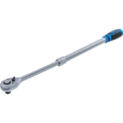 for tightening and loosening tight screw connections | long and telescopic lever arm for high torques | lockable in 6 various stages (455 - 595 mm) in connection with a self-locking ring with practical quick-release insert for easy change of sockets | non-slip and ergonomically shaped 2-component handle for safe and comfortable work | fine toothed with 72 teeth ratchet head with lever switch for changing the screwing direction (right-left rotation) | ball lock guarantees a firm and secure hold of the sockets on the square drive output end output profile: external square | drive profile size metric: 12.5 mm | drive profile size inch: 1/2" material: chrome vanadium steel | surface finish: satin chrome plated | of teeth in ratchet head: 72 | handle type: 2 component handle, Weight: 2.5573622392 pounds, Manufacturer: BGS
