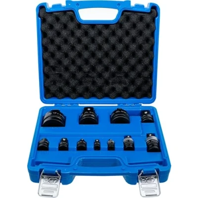 made of chrome molybdenum steel suitable for both manual and impact wrenches can be fixed on impact wrench by pin and O-ring scope of delivery: Adaptor 6.3 mm (1/4“) drive - 10 mm (3/8")drive | Adaptor 10 mm (3/8") drive - external square 6.3 mm (1/4") | Adaptor 10 mm (3/8") drive - external square 12.5 mm (1/2") Adaptor drive 12.5 mm (1/2“) drive - external square 10 mm (3/8") | Adaptor drive 12.5 mm (1/2“) drive - external square 20 mm (3/4") Adaptor drive internal square 20 mm (3/4") - external square 12.5 mm (1/2") | Adaptor drive internal square 20 mm (3/4") - external square 25.4 mm (1") | Adaptor drive internal square 25.4 mm (1") - external square 20 mm (3/4") 3 ball joints drive internal square / external square: 6.3 mm (1/4"), 10 mm (3/8"), 12.5 mm (1/2"), Weight: 5.6658801334 pounds, Manufacturer: BGS