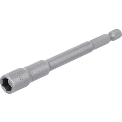 made of chrome vanadium steel hexagon type with holding magnet 6.3 mm (1/4") drill shaft wrench size: 8 mm profile: chrome plated length: 100 mm, Manufacturer: BGS