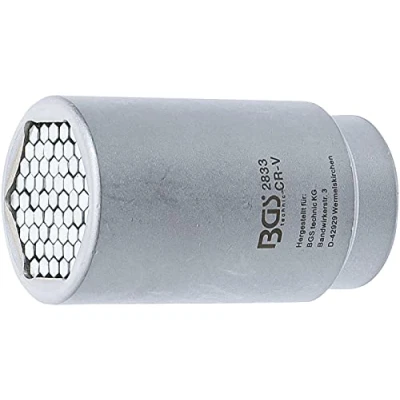 suitable for all hexagon bolts and nuts in inches and metric sizes not suitable for use on rim / wheel locks material: chrome vanadium steel drive profile size, metric: 20 mm | drive profile size, inch 3/4" | drive profile: Internal square, Weight: 1.9400679056 pounds, Manufacturer: BGS