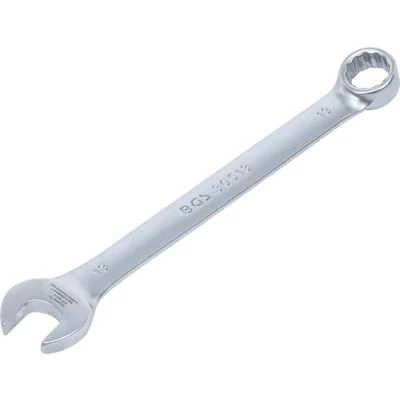 made of chrome vanadium steel cold forged satin chrome finish ring end 15° angled profile ring end: 12-point wrench size 1: 13 mm wrench size 2: 13 mm surface finish: satin chrome plated, Weight: 0.1763698096 Pounds, Manufacturer: BGS